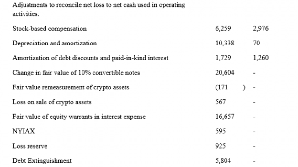 Wir definieren das EBITDA als Nettoergebnis vor Zinsen, Steueraufwand, Abschreibungen und Amortisationsaufwand. Wir definieren das bereinigte EBITDA als um aktienbasierte Vergütungen, Abschreibungen, Amortisationsaufwendungen, Zinsaufwendungen (netto), die Veränderung des beizulegenden Zeitwerts von zum beizulegenden Zeitwert bewerteten Schuldverschreibungen mit Fälligkeit im Jahr 2025, die Veränderung des beizulegenden Zeitwerts einer zum beizulegenden Zeitwert bewerteten Wandelanleihe an verbundene Unternehmen, die Veränderung des beizulegenden Zeitwerts von Optionsscheinsverbindlichkeiten, die Veränderung des beizulegenden Zeitwerts von Kryptowährungen, die Tilgung von Schulden und die Rückstellung für Ertragsteuern bereinigt.